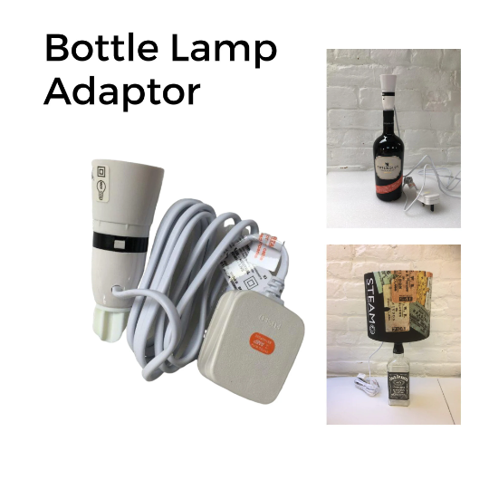 Convert a beautiful bottle into an instant table lamp with this easy adaptor. Simply push the lamp holder into the bottle opening - no need for drilling or wiring. Change your lamp to suit your latest favourite tipple!