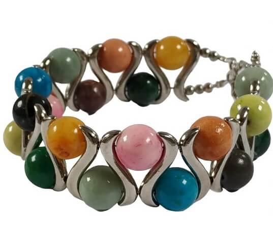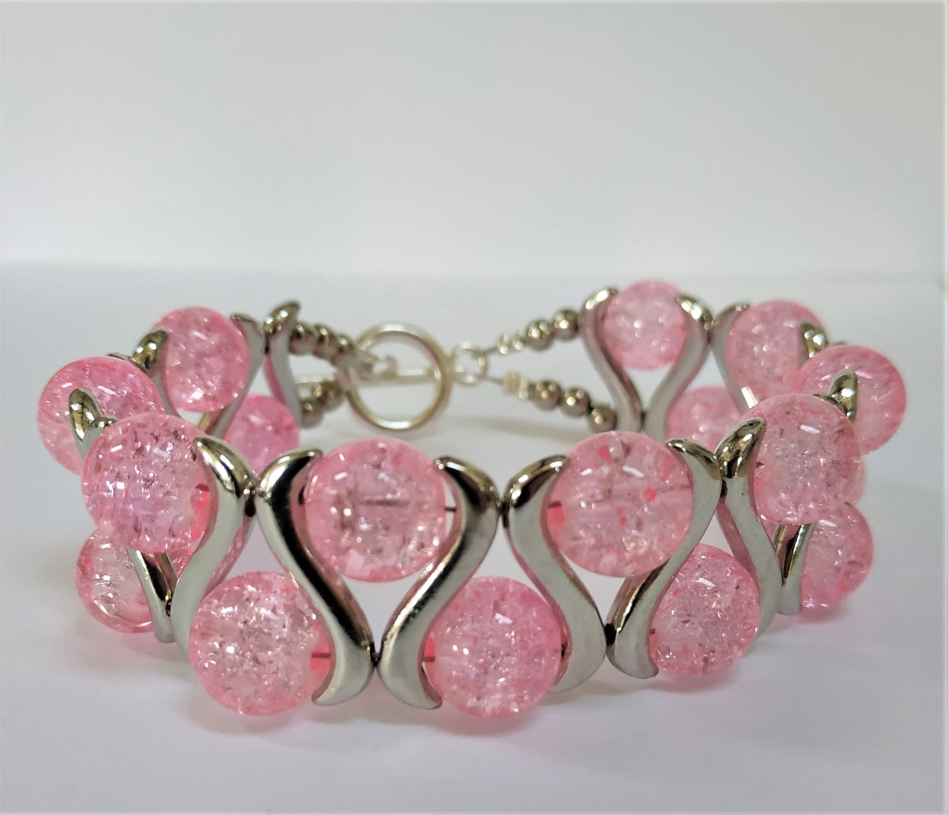 The curvy silver spacers frame the glass beads beautifully and will certainly impress your friends when you wear your bracelet.