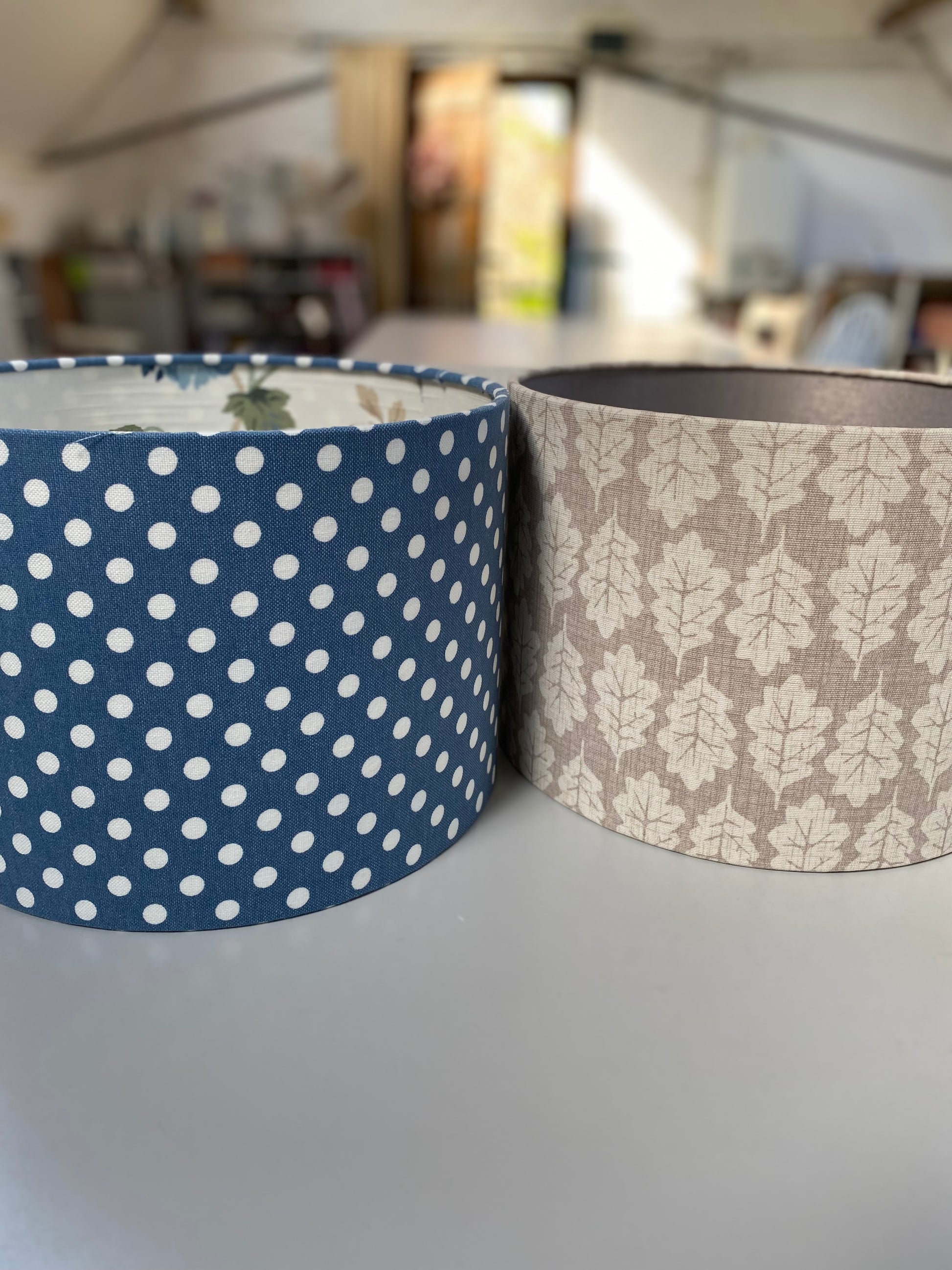 Handmade (by us) 30cm drum lampshade suitable for a table lamp base.