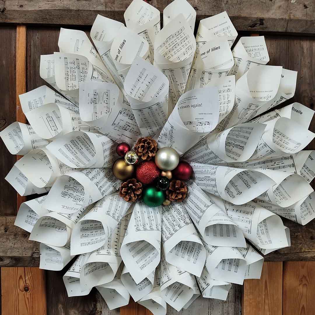 Clear, step-by-step instructions to create a high-impact wreath from original vintage music.